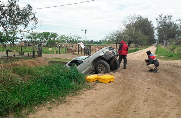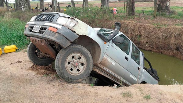 En la siesta del miércoles, una camioneta Toyota Hilux que circulaba a la vera del canal de desagüe norte de la localidad, a la altura de la calle Almirante Brown, realizó una mala maniobra, y terminó cayendo al lecho de agua.