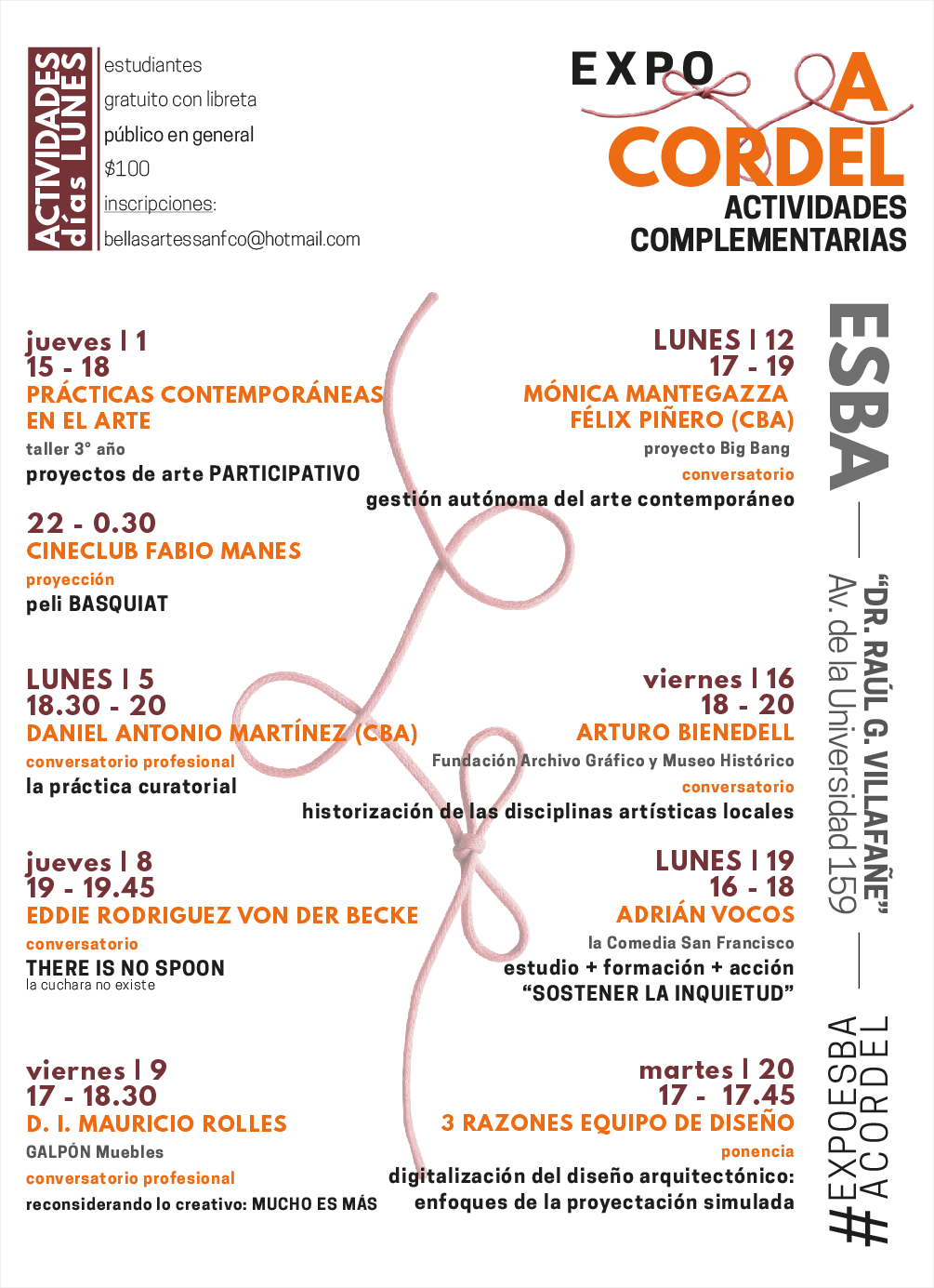 Habrá intervenciones espaciales, musicales y plásticas. Las inscripciones a actividades complementarias: talleres de producción, conversatorios con artistas y gestores culturales, seminarios, visitas guiadas serán hasta el día 20 de noviembre.