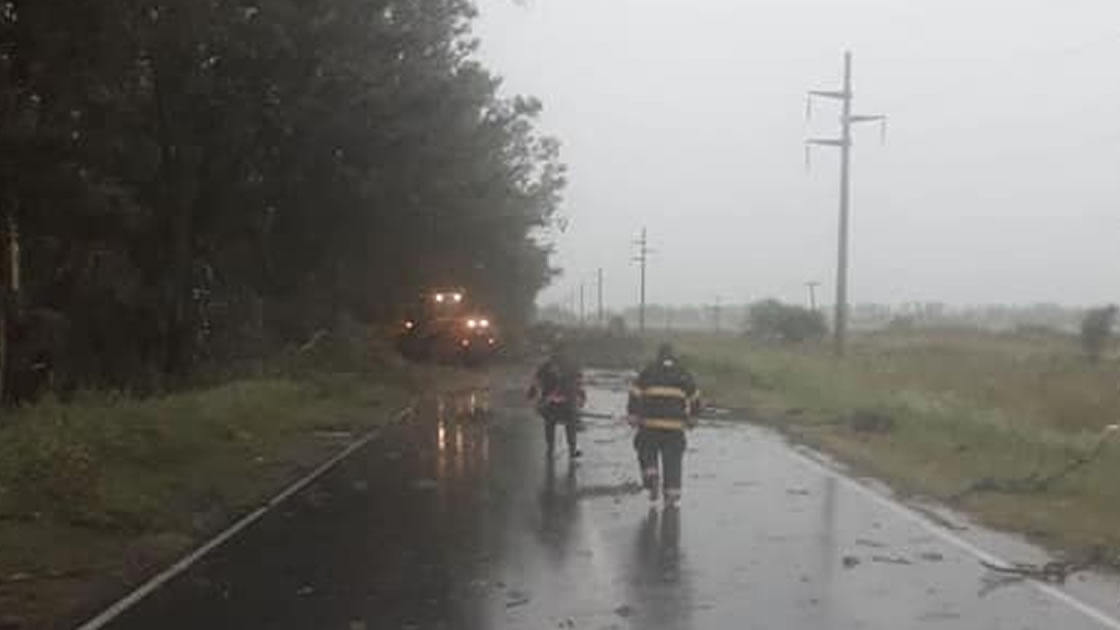 Los llamados se efectuaron tanto al 100 como al 103 (Defensa Civil Municipal) notificando la caída de grandes árboles en distintos puntos de ingresos a la ciudad, como Av. Maipú, ruta provincial 1, camino a Plaza San Francisco y ruta 158; como así también en algunos barrios de la ciudad. En el lugar trabajaron cinco unidades y alrededor de 30 bomberos, en conjunto con personal municipal.