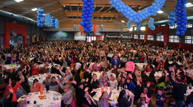 El lugar elegido por el oficialismo municipal fue el salón de la Sociedad Bomberos Voluntarios donde se pudo reunir a más de 1500 personas que además de escuchar los shows en vivo pudieron jugar al bingo.