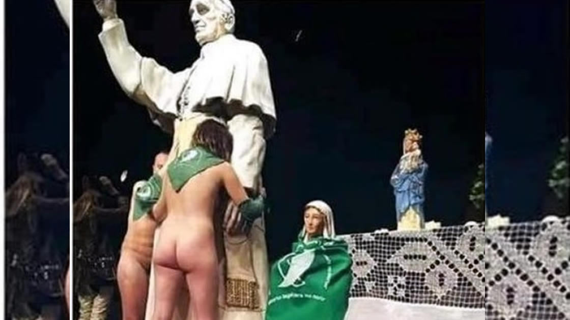 Rafaela: bailaron desnudos con pañuelos verdes sobre una imagen de la Virgen y el papa Francisco
