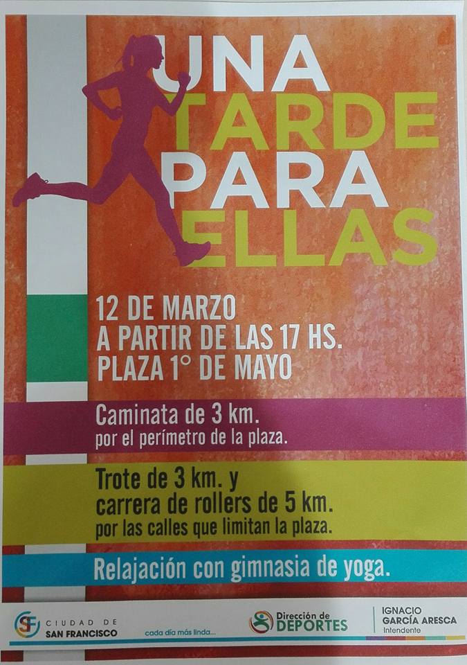En el marco del mes de la mujer, la Municipalidad de San Francisco a través de la Dirección de Deporte y Recreación realizará un evento deportivo recreativo denominado “Una tarde para ellas”, este sábado 12 de marzo a las 17 horas en la Plaza 1º de Mayo de nuestra ciudad. El anuncio fue realizado por el secretario de Gobierno Dr. Gustavo Piscitello y el director de Deporte y Recreación Prof. Juan Iturburu.