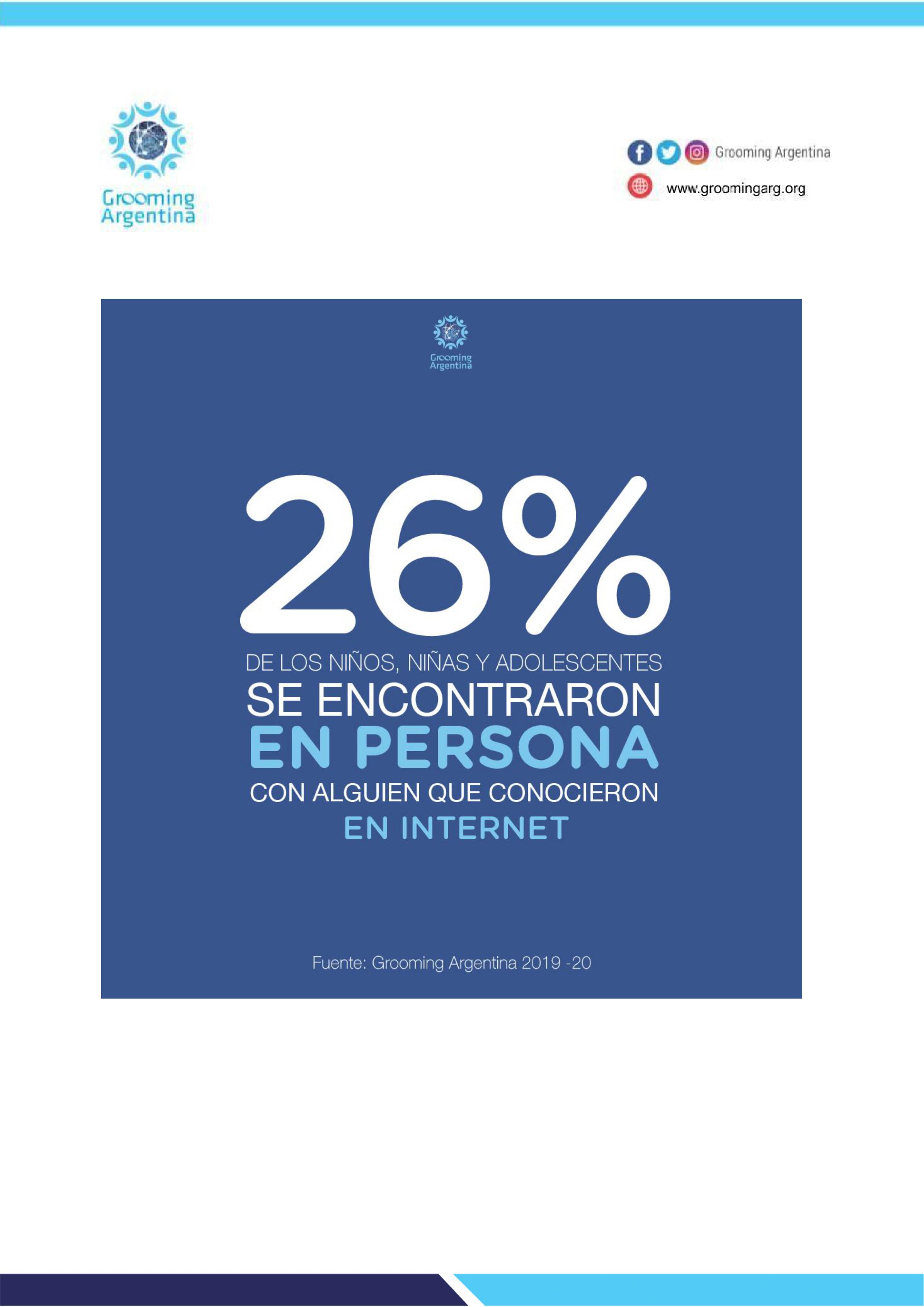 El grooming es un delito iniciador que puede derivar en abuso sexual físico. El 26% de los niños, niñas y adolescentes se encontraron personalmente con alguien que conocieron por Internet.