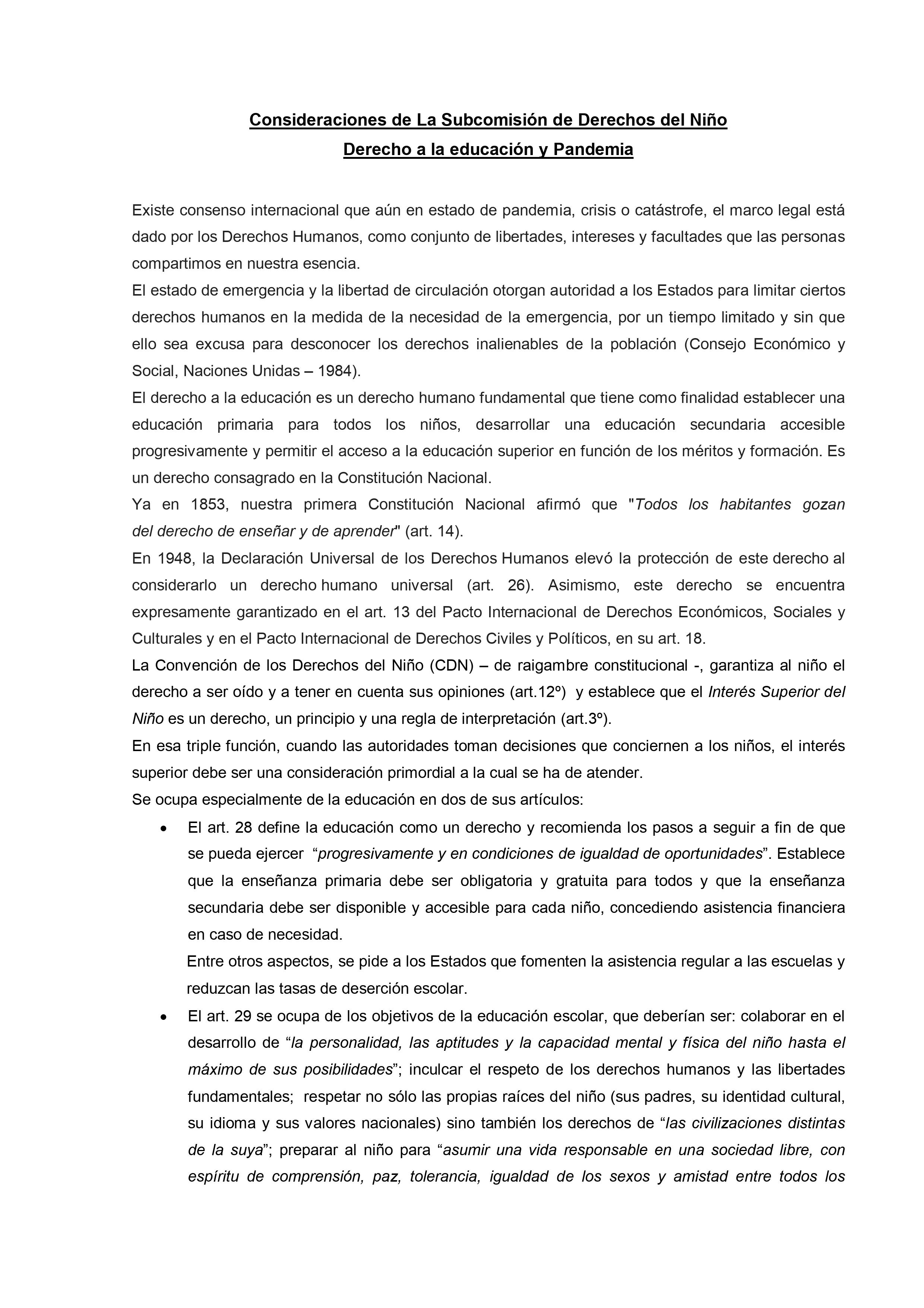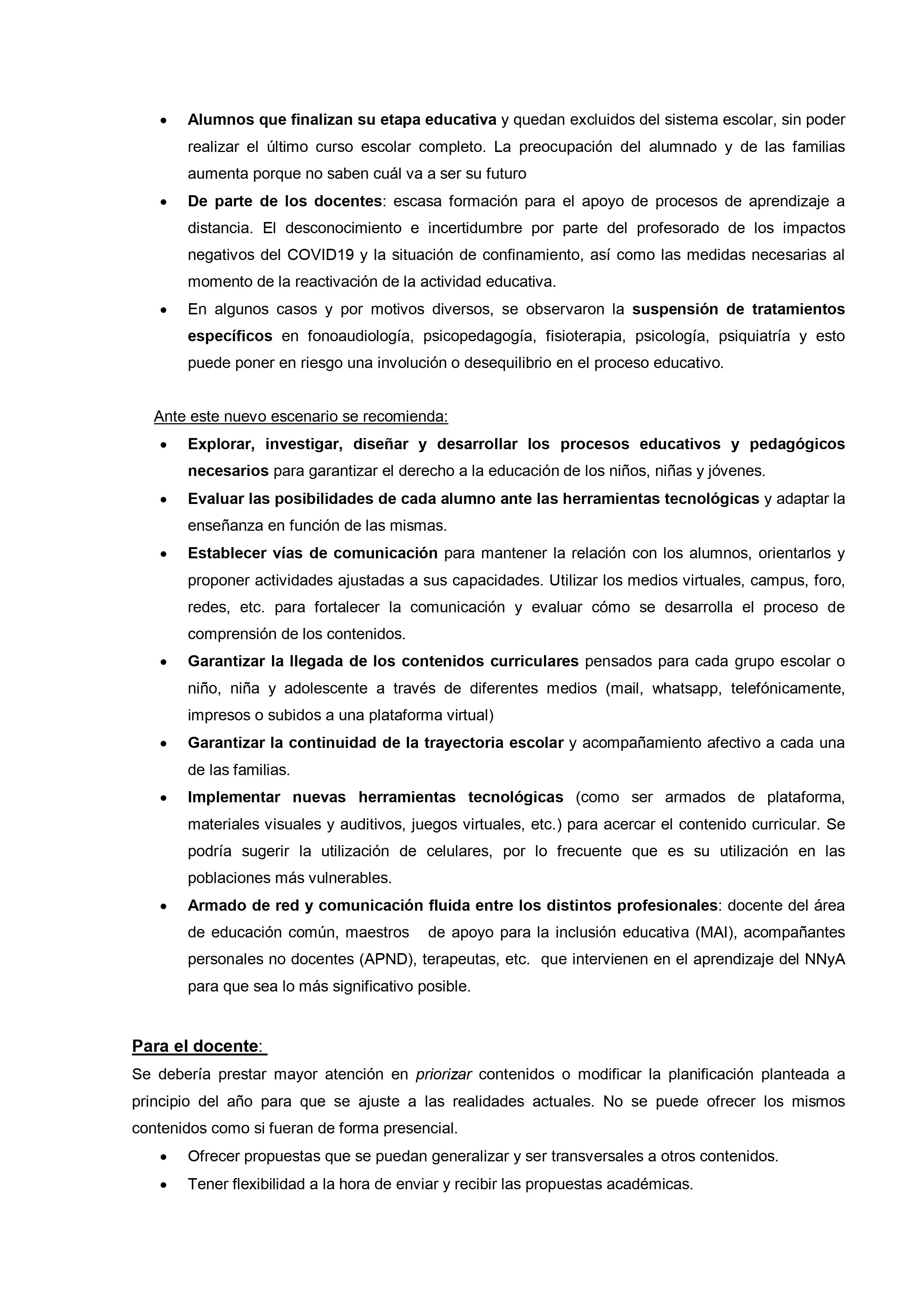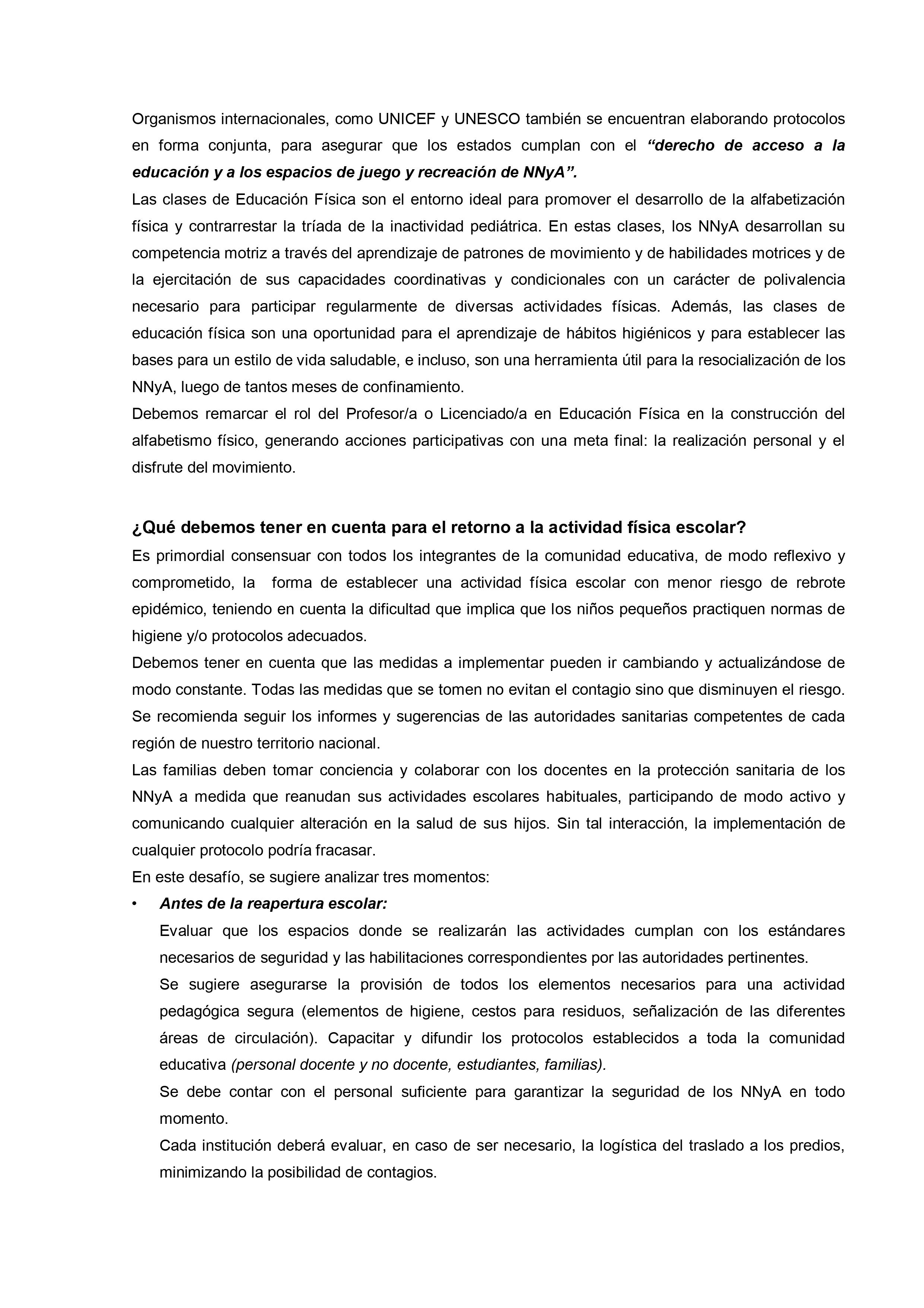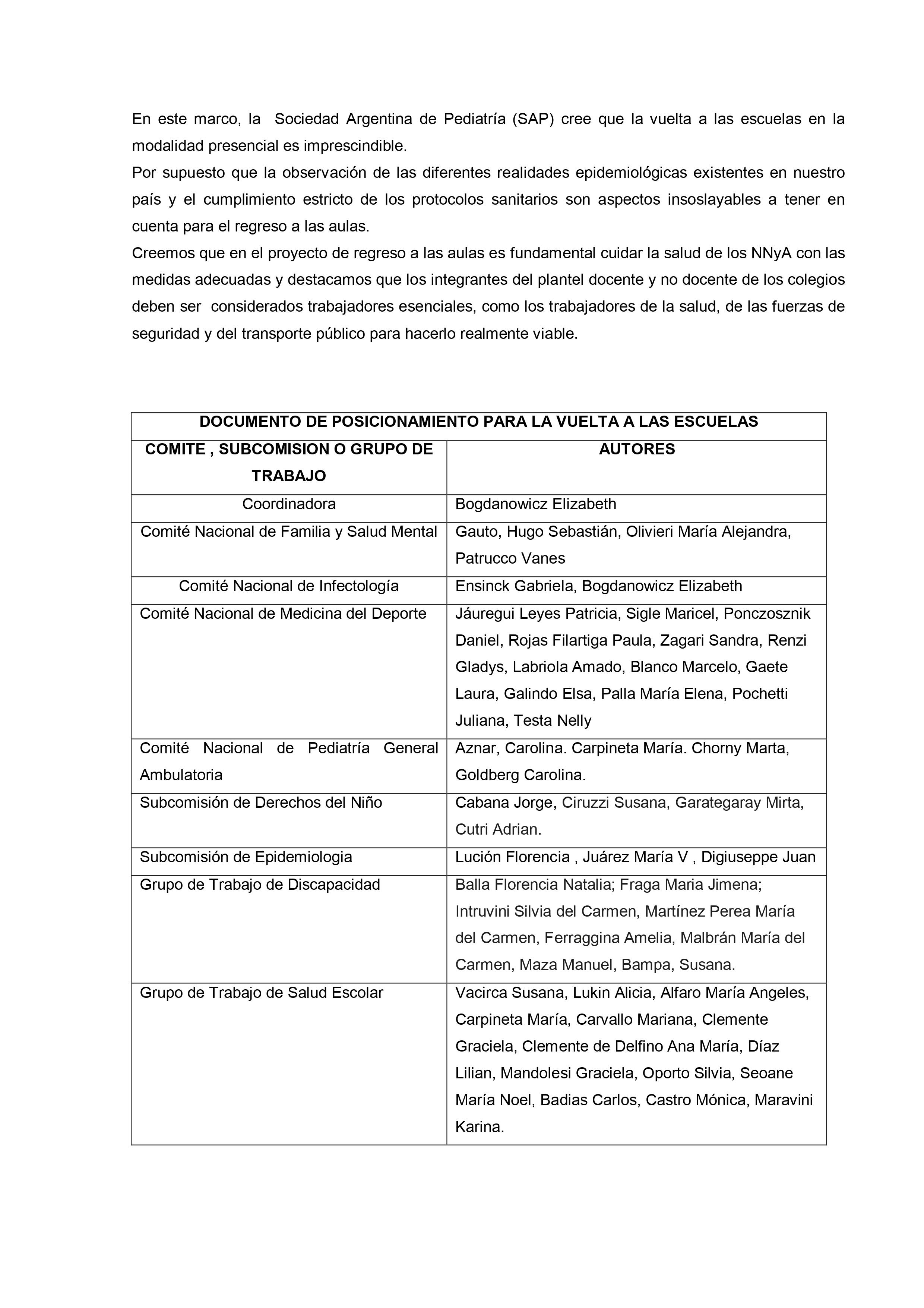 En un extenso informe del que participan otras organizaciones vinculadas al tema desde el ámbito de la salud y del bienestar se sostiene que, con los cuidados pertinentes «es fundamental que las escuelas abran de la forma más segura y rápida posible para reanudar las clases presenciales. Para que las escuelas puedan abrir y permanecer abiertas, es importante adoptar e implementar de manera correcta y constante las medidas correspondientes para desacelerar la propagación del SARS-CoV-2, no solo dentro de la escuela sino también en la comunidad.»