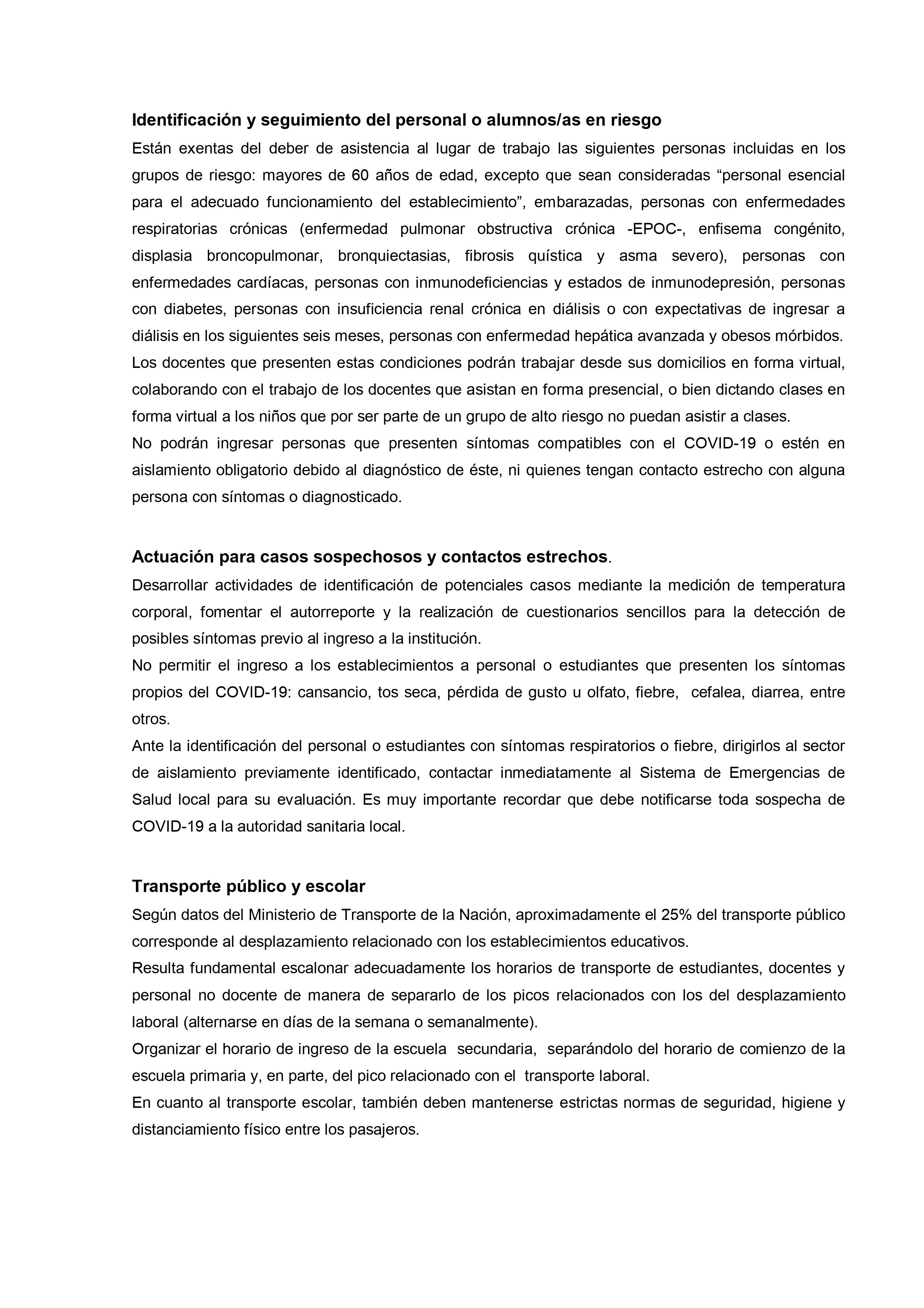 En cuanto al transporte escolar, también deben mantenerse estrictas normas de seguridad, higiene y distanciamiento físico entre los pasajeros.