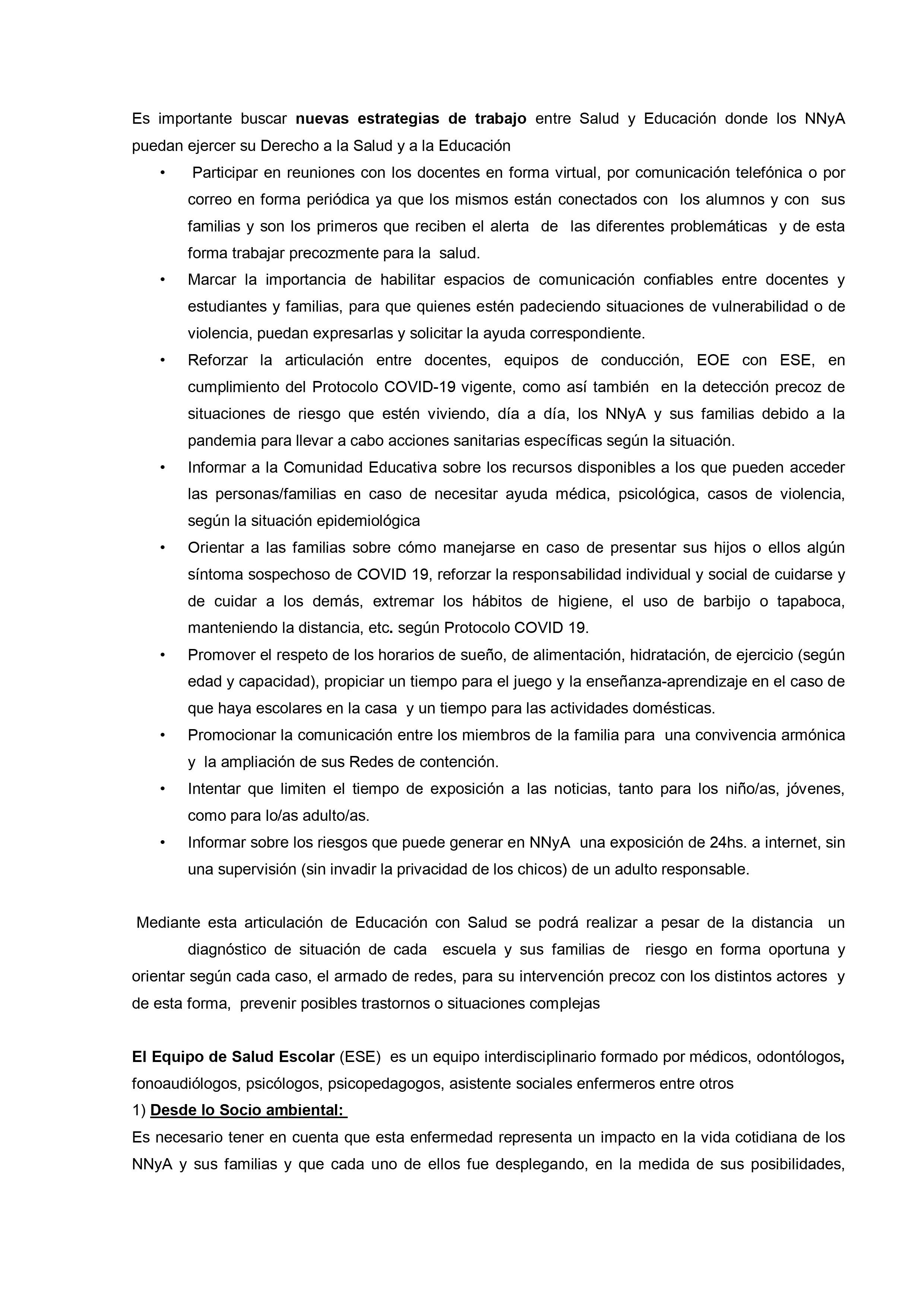 * Evitar reuniones de docentes u otros miembros de la comunidad educativa en espacios donde no pueda cumplirse el distanciamiento. Se deberán realizar en forma virtual.