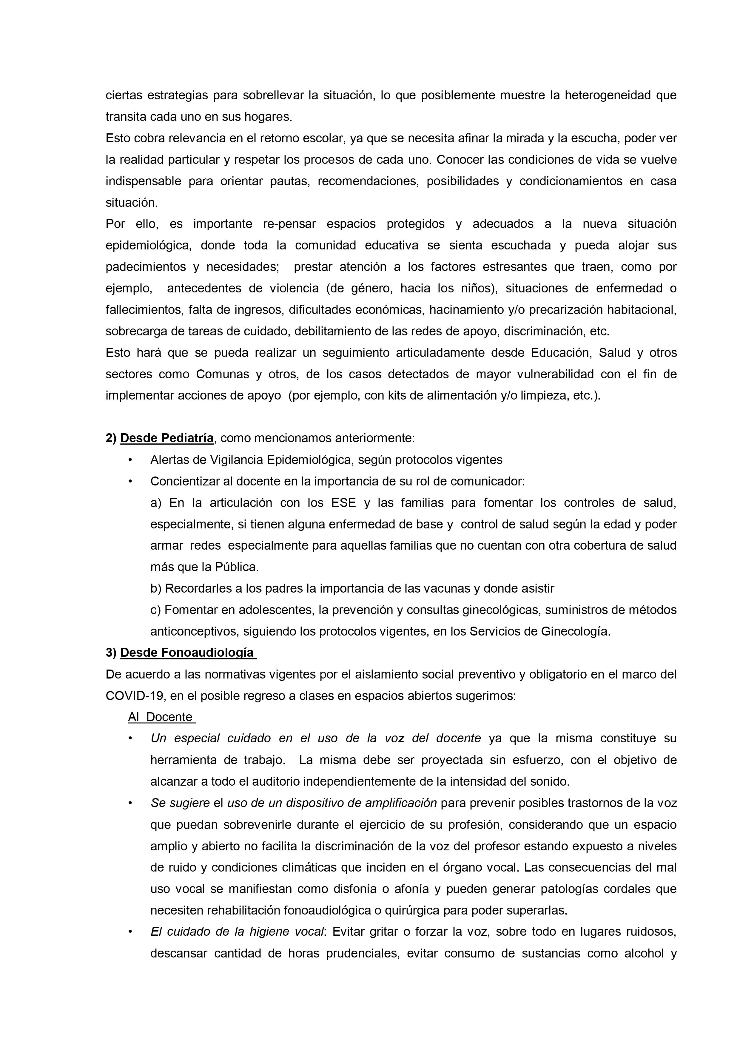 Los docentes que presenten estas condiciones podrán trabajar desde sus domicilios en forma virtual, colaborando con el trabajo de los docentes que asistan en forma presencial, o bien dictando clases en forma virtual a los niños que por ser parte de un grupo de alto riesgo no puedan asistir a clases.
